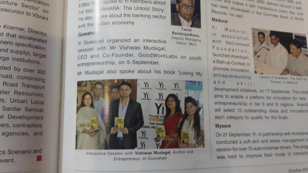 “Yi Guwahati organised an interactive session with Mr Vishwas Mudagal, CEO & Co-founder, GoodWorkLabs on youth entrepreneurship, on 5 September.